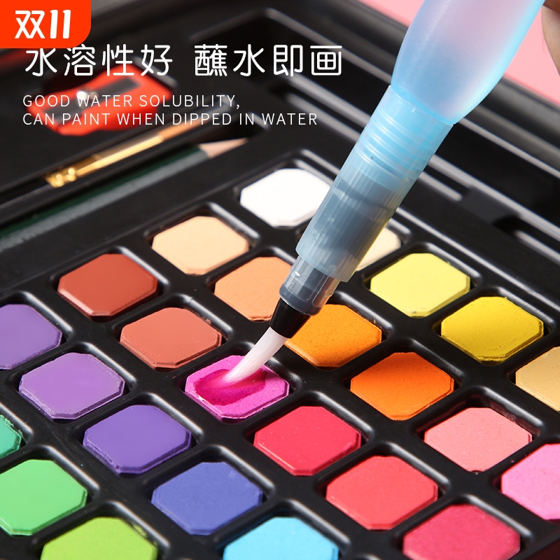 固体水彩画颜料套装美术生专用36色儿童水粉颜料铁盒调色盘便携72色24色画画工具全套无毒可水洗珠光48色进阶
