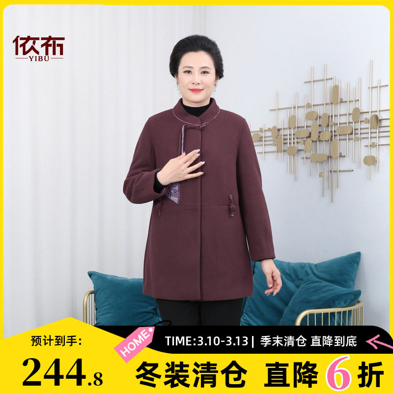 依佈新中式妈妈冬装外套中老年双面呢子上衣60多岁老年人毛呢大衣