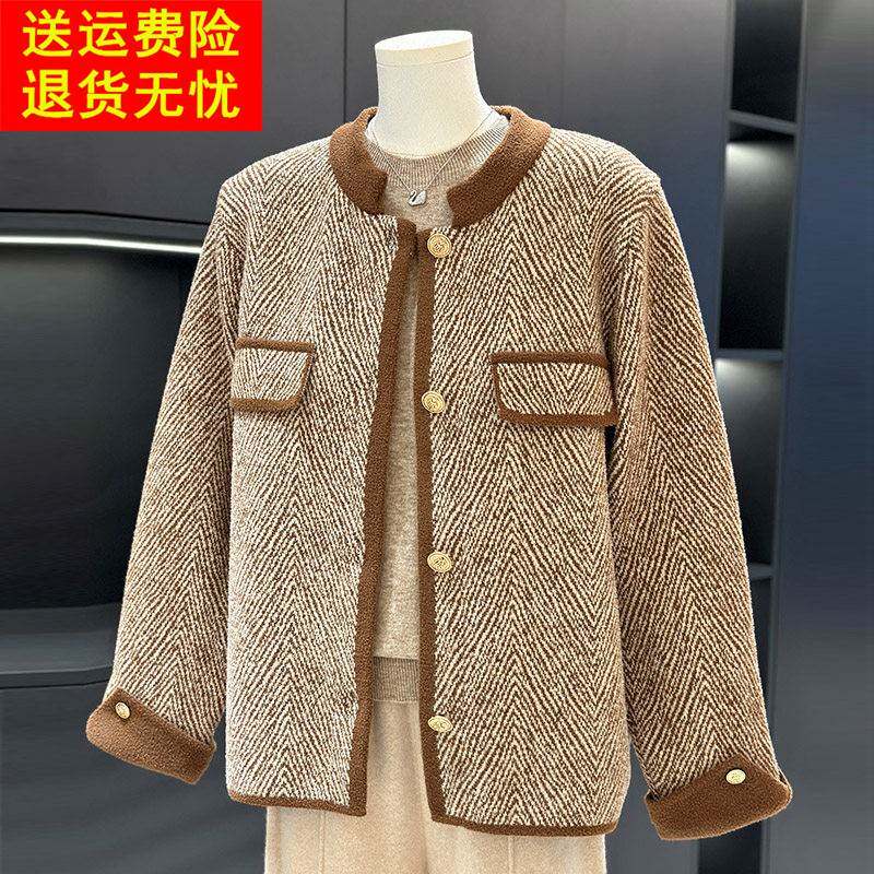 2026新款妈妈冬装羊毛呢外套中老年女装秋冬短款圆领开衫呢子大衣
