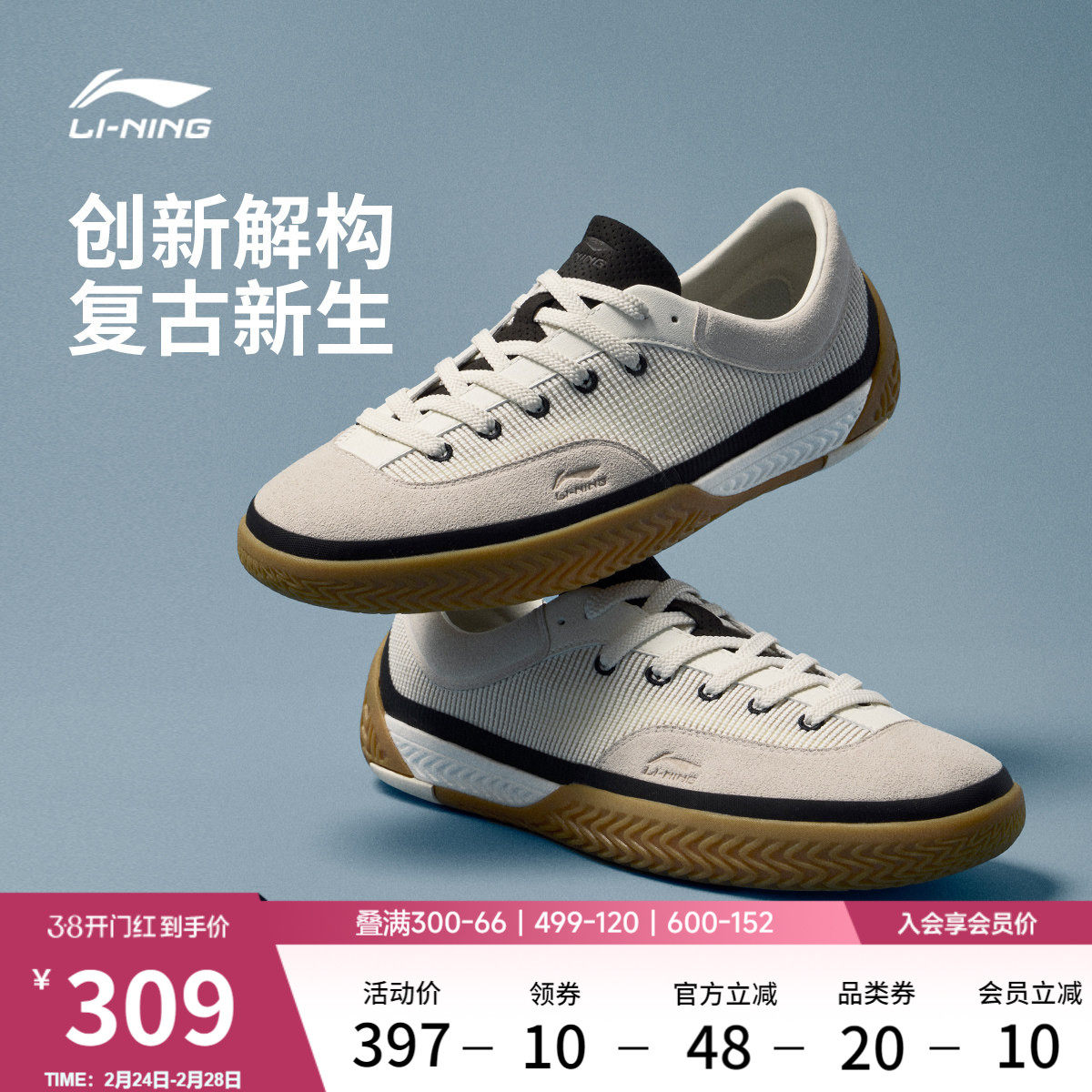 李宁破格 | 德训鞋男鞋全掌䨻春季新款帆布鞋休闲鞋板鞋运动鞋子