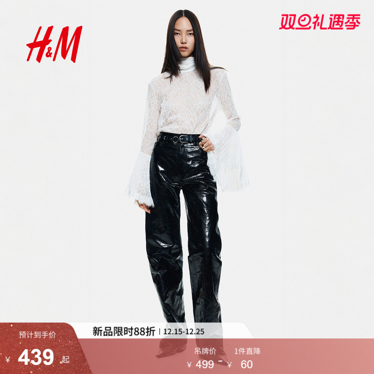 蕾丝半高领毛衣女喇叭袖打底衫2025秋冬新款宽松针织衫内搭上衣潮