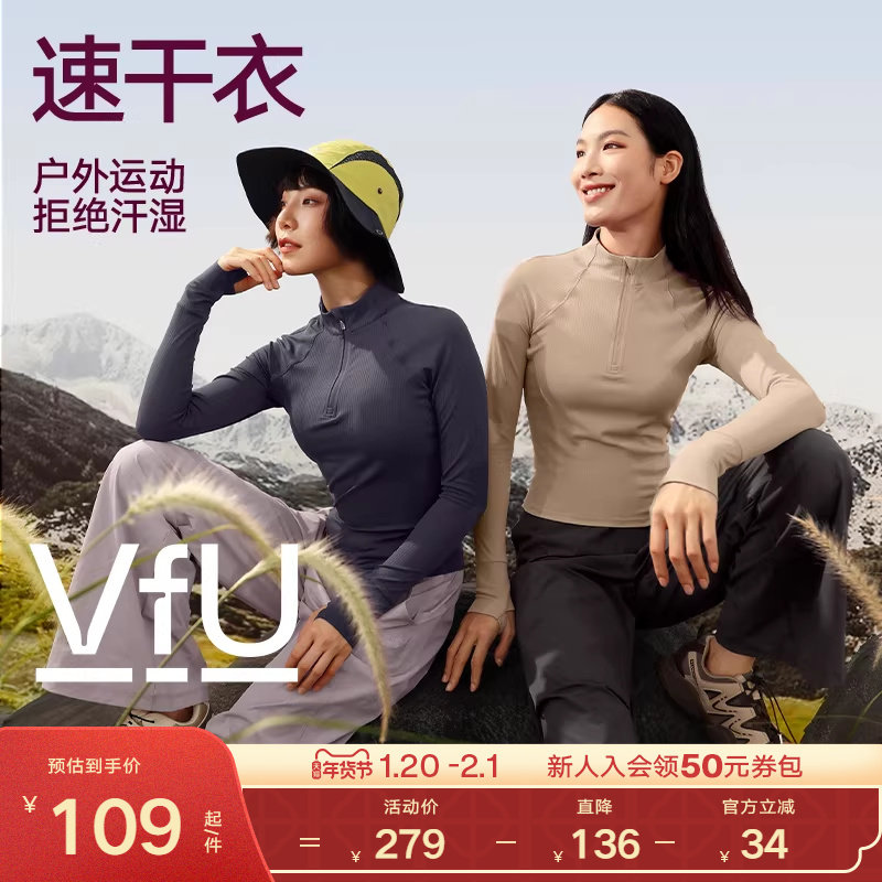 VfU速干运动上衣女户外修身跑步骑行健身训练服2024新款长袖秋冬