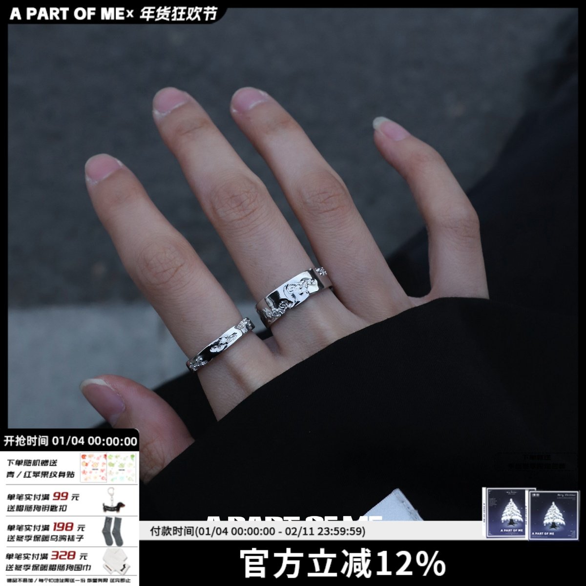 - 纯银情侣对戒刻字