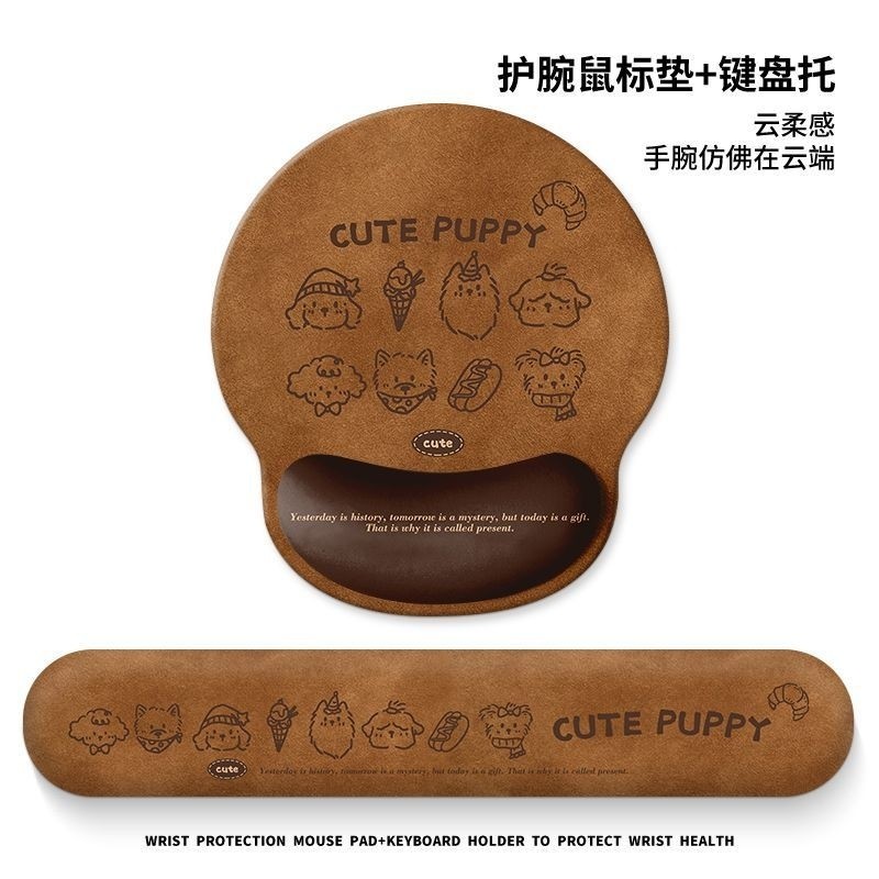 卡通可爱小狗护腕鼠标垫子女生保护手腕托一体电脑键盘托办公桌垫