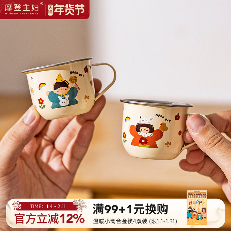摩登主妇316L不锈钢儿童水杯敞口幼儿园宝宝小杯子家用早餐牛奶杯