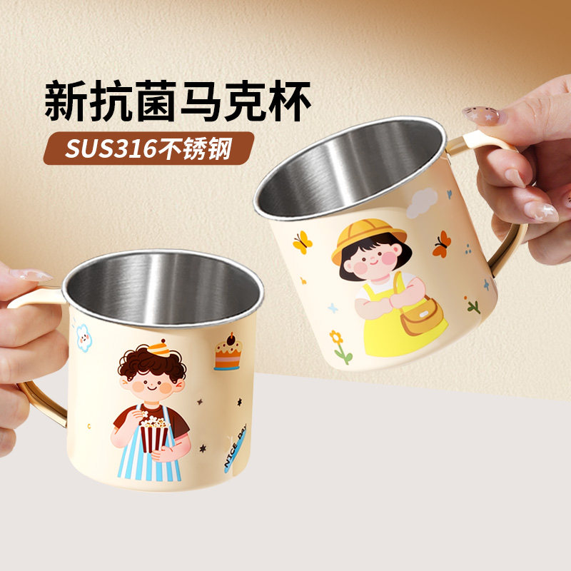 316不锈钢幼儿童水杯宝宝专用喝牛奶杯食品级防摔婴儿学饮敞口杯