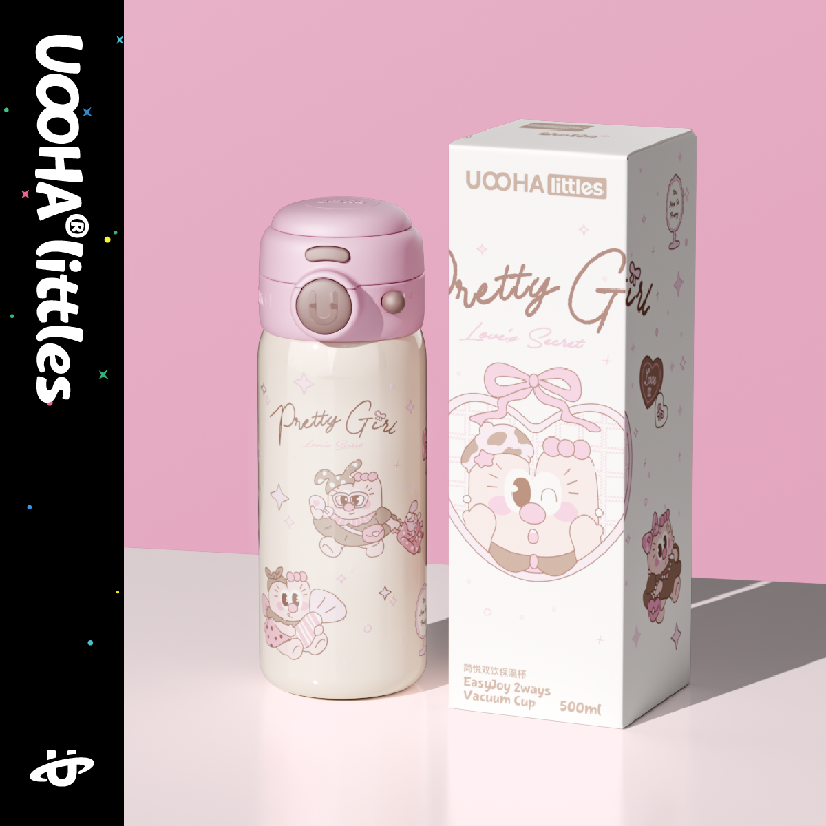 UOOHA简悦双饮保温杯儿童水杯女生高颜值可爱便携不锈钢吸管杯子
