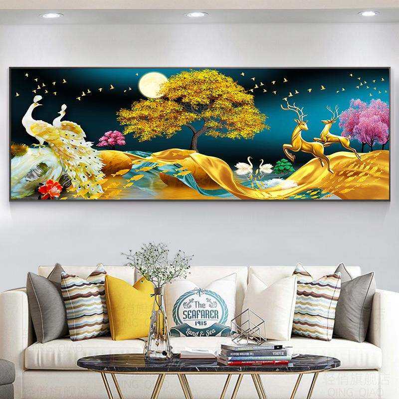 手工5d钻石画中式客厅招财麋鹿点贴钻十字绣线绣大幅满钻孔雀2023
