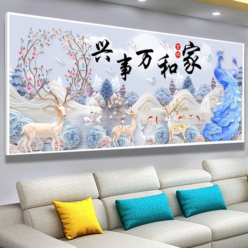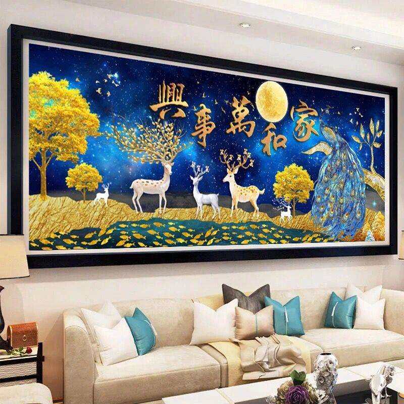 家和万事兴5D钻石画满钻2025新款客厅大气风景粘贴十字绣麋鹿孔雀