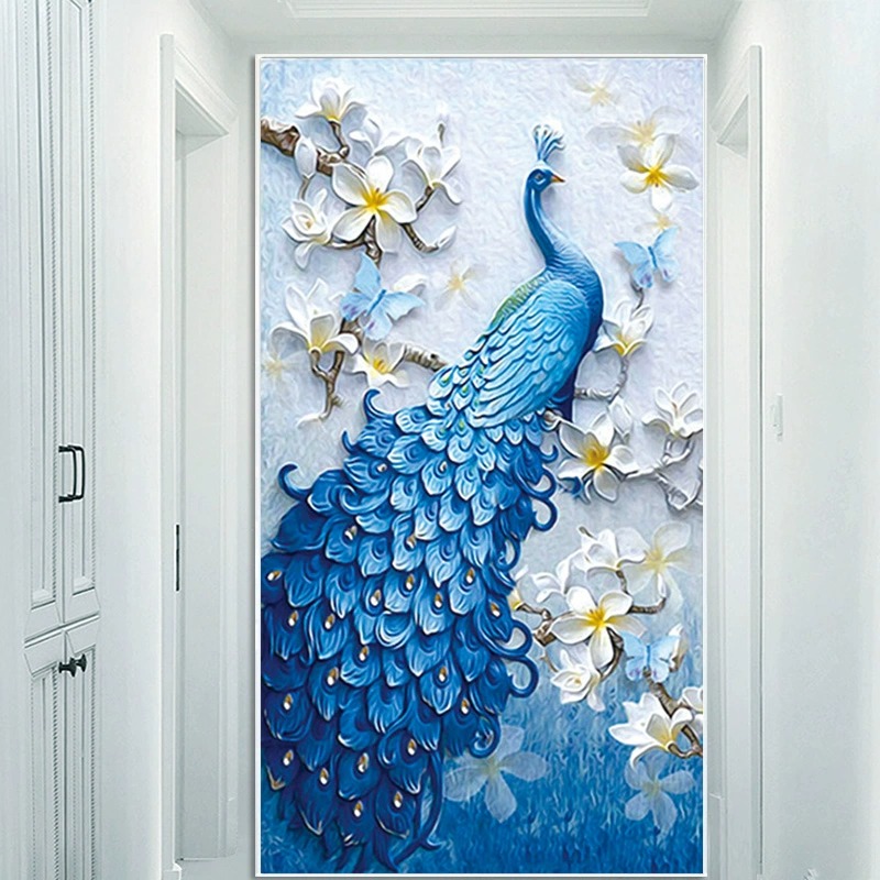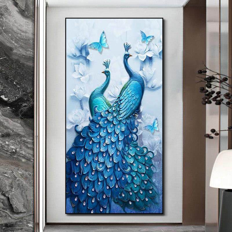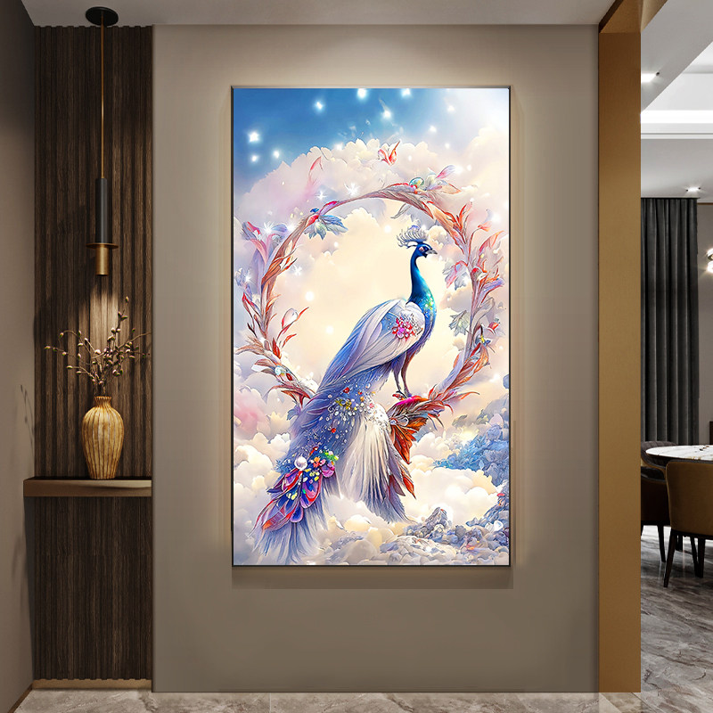 高颜值钻石画2025年新款孔雀5d成人点贴钻十字绣竖版客厅玄关满钻