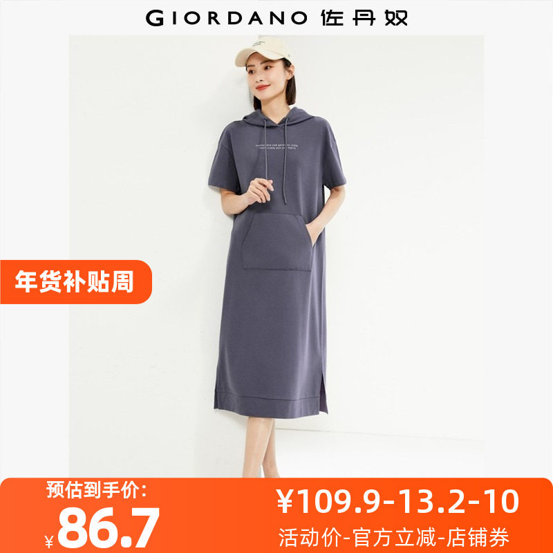 佐丹奴裙子女装纯棉针织字母印花连帽卫衣连衣裙 05464475