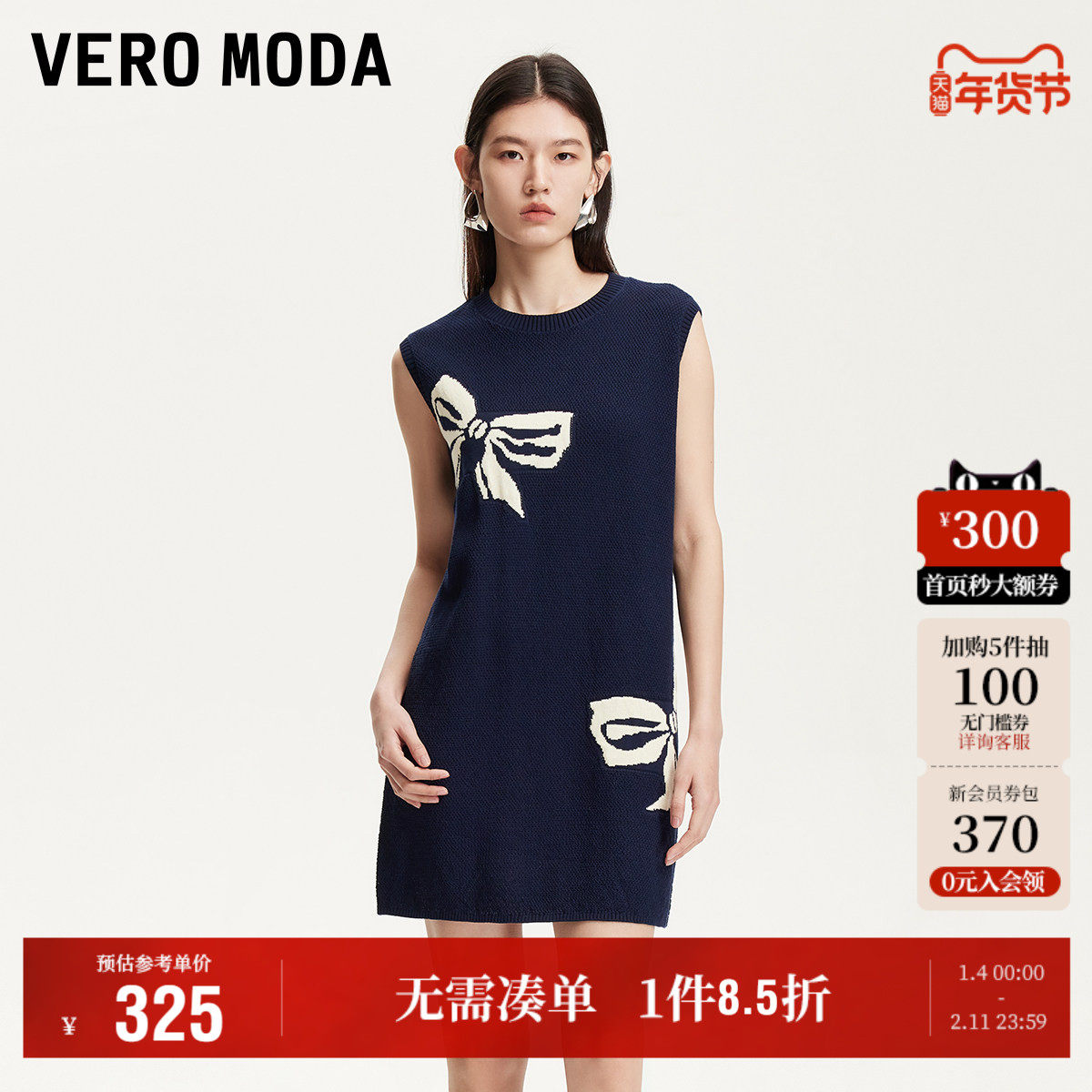 Vero Moda奥莱针织连衣裙2025秋季新款商场同款纯棉无袖印花高级