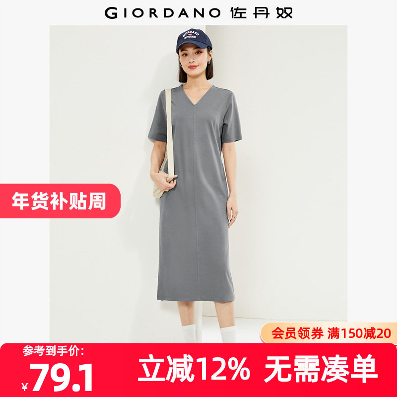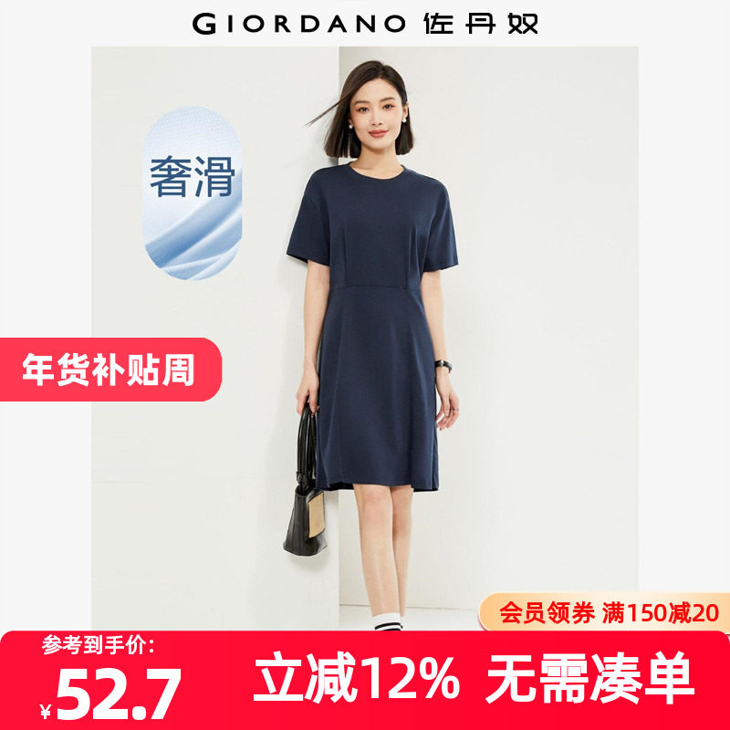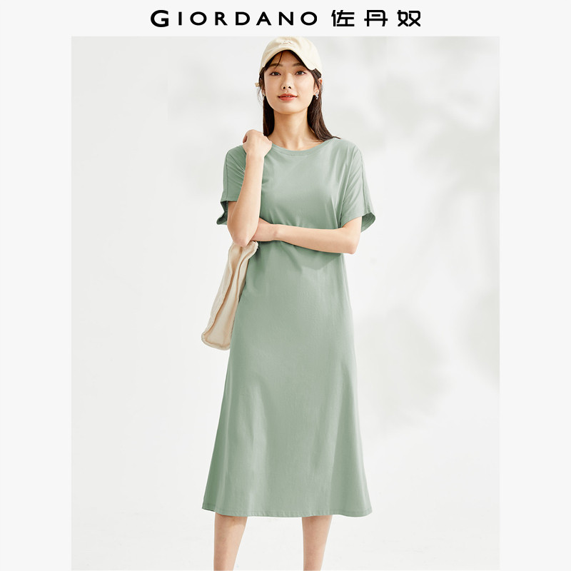 佐丹奴裙子女装纯棉针织宽松圆领连袖短袖连衣裙 05463460