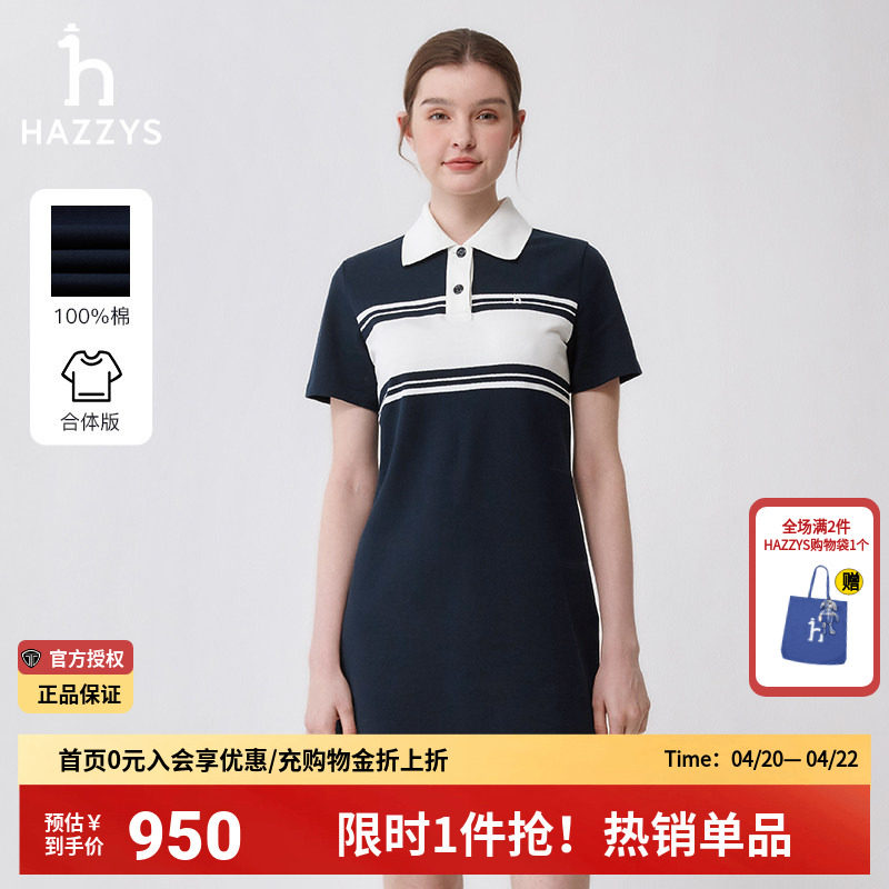 哈吉斯hazzys官方女装正品春夏季新款纯棉休闲撞色针织polo连衣裙