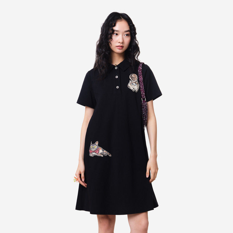 MOVEUP幻走2026夏季新款.FUN系列纯棉polo领绣花章仔针织连衣裙