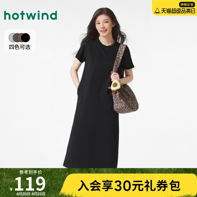 热风连衣裙2025年春季新款女士短袖纯棉基本款针织中长裙时尚百搭