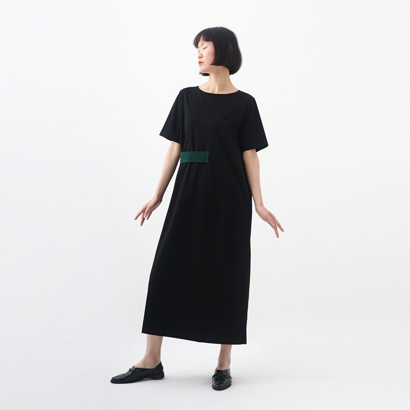 MOVEUP幻走2024春夏纯棉拼接短袖宽松休闲黑色假两件针织连衣裙女