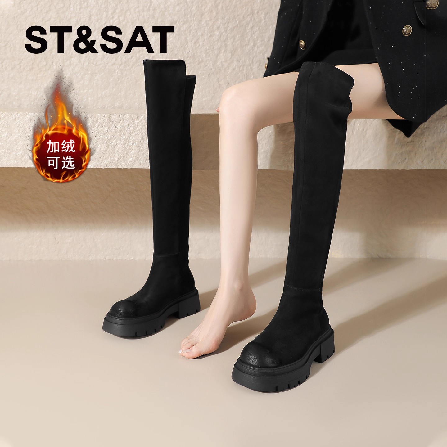 星期六过膝厚底长筒靴女2025新款冬季黑色加绒靴女高筒瘦瘦长靴子