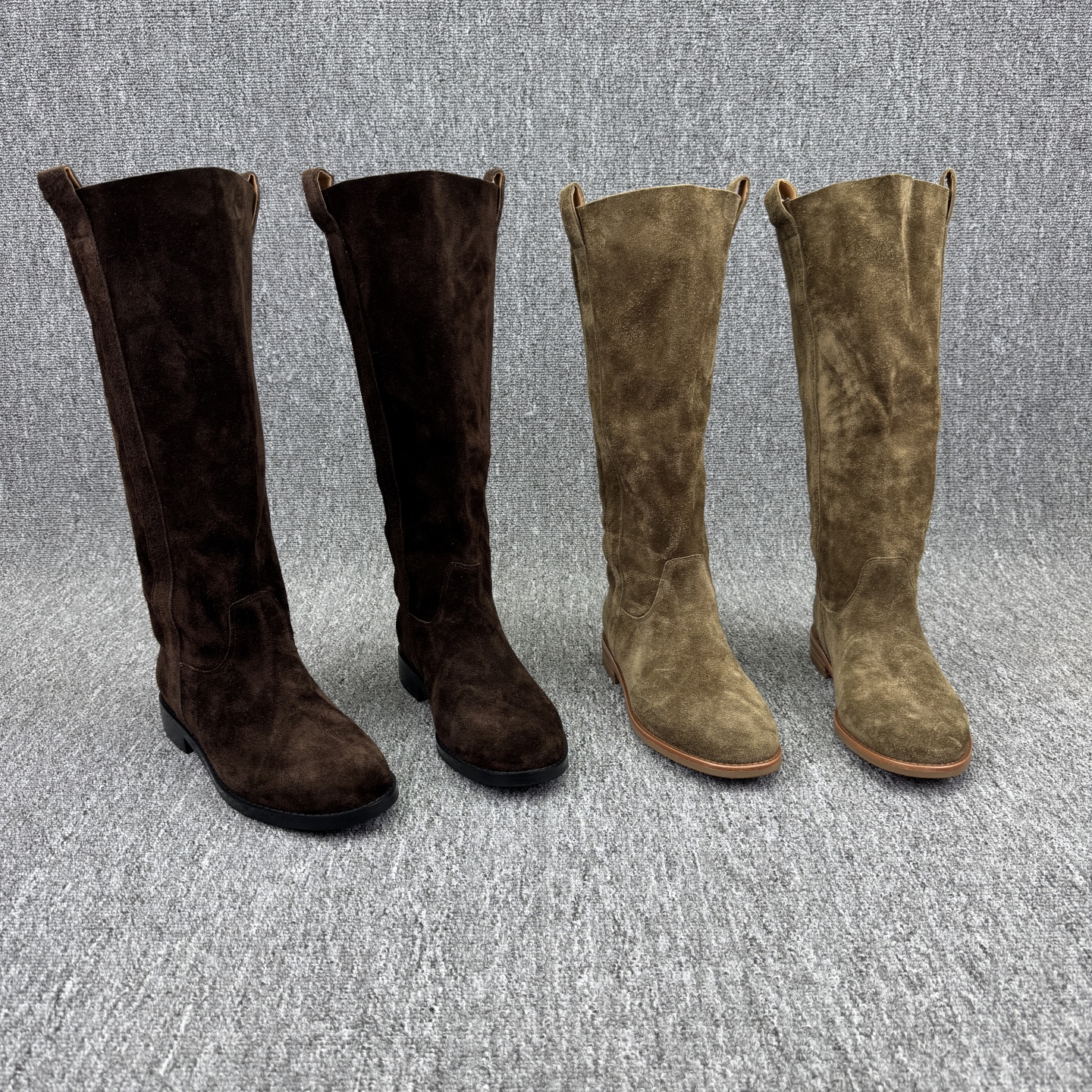欧货真皮宽筒女靴2025新款中筒靴磨砂皮复古长靴欧货不过膝骑士靴