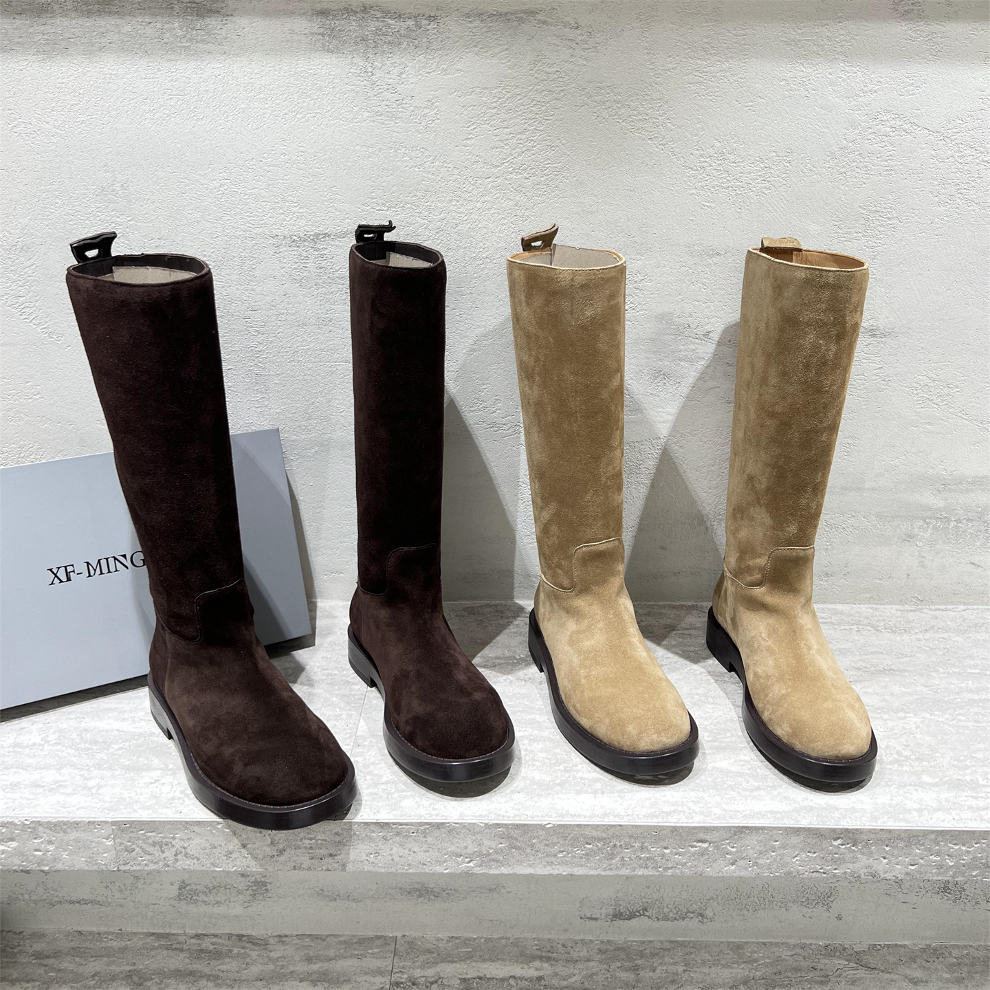 尾货撤柜处理女靴骑士靴真皮牛皮高筒靴不过膝新款磨砂牛皮堆堆靴