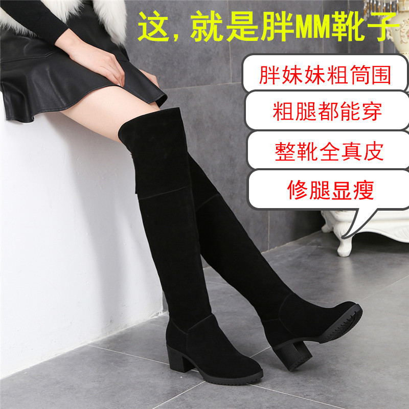 大筒围女靴胖mm粗腿加肥女长靴过膝子高跟磨砂真皮大桶围定做大码