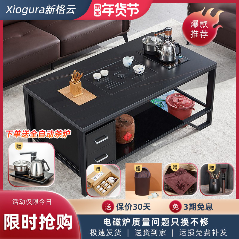 岩板功夫茶几办公室会议简约新中式组装茶台桌家用泡茶烧水壶套装