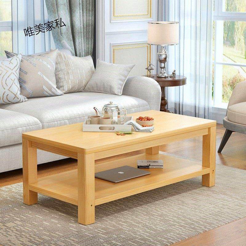 简约实木茶几客厅储物小户型组装双层小木茶几简易长方形现代迷你