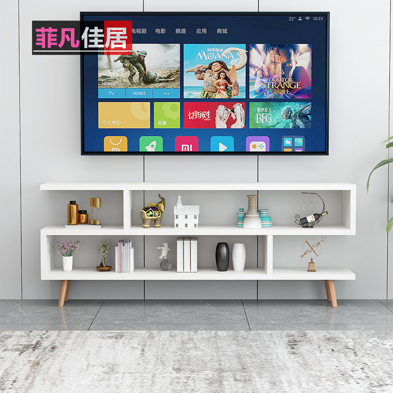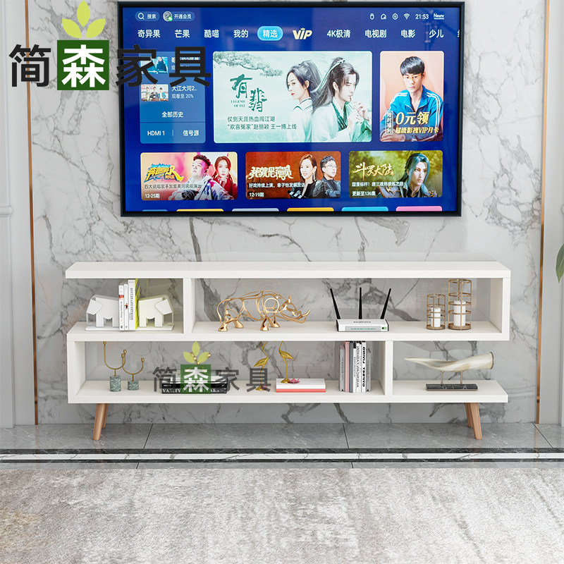 简约现代小户型实木腿茶几电视柜组合电视机柜客厅简易白色组装柜