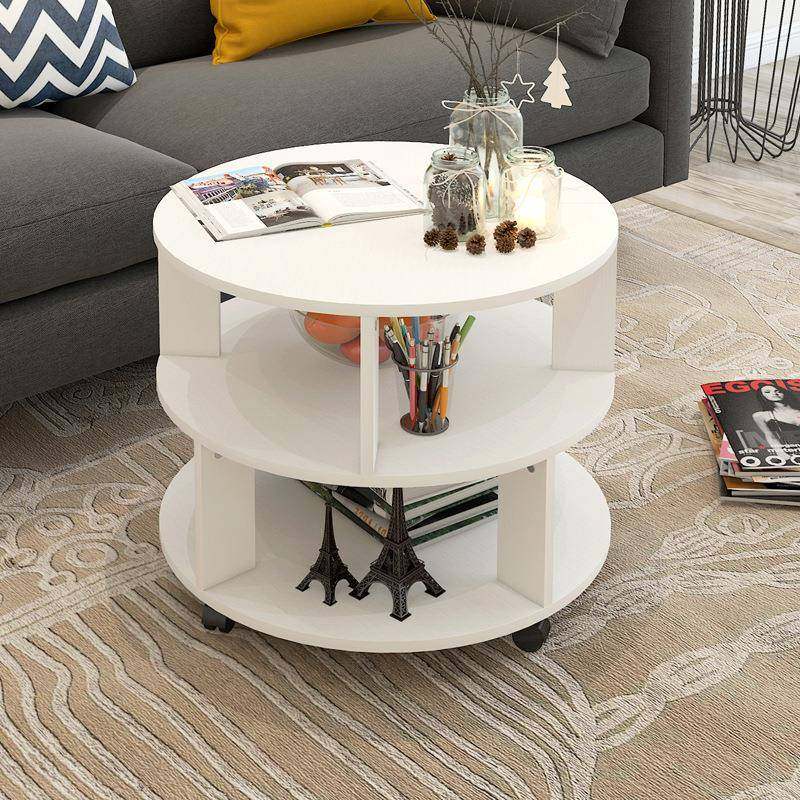 茶几简约现代北欧圆形创意客厅储物卧室床边柜边几组装阳台小桌子
