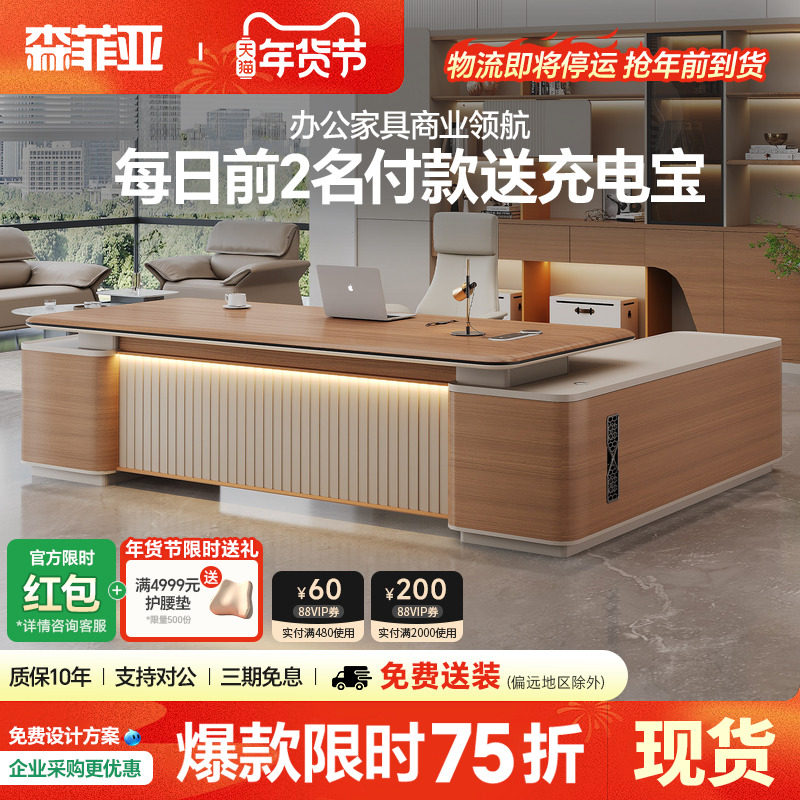 老板桌总裁桌带灯高端轻奢网红现代董事长办公桌总经理办公室桌椅