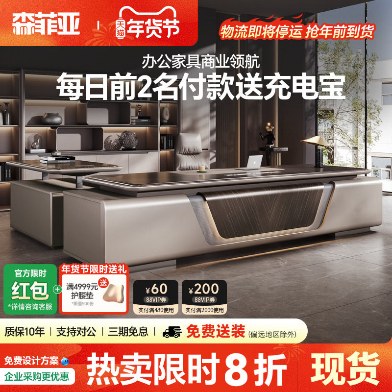 老板桌总裁桌轻奢高端大班台办公室桌椅组合简约现代董事长办公桌