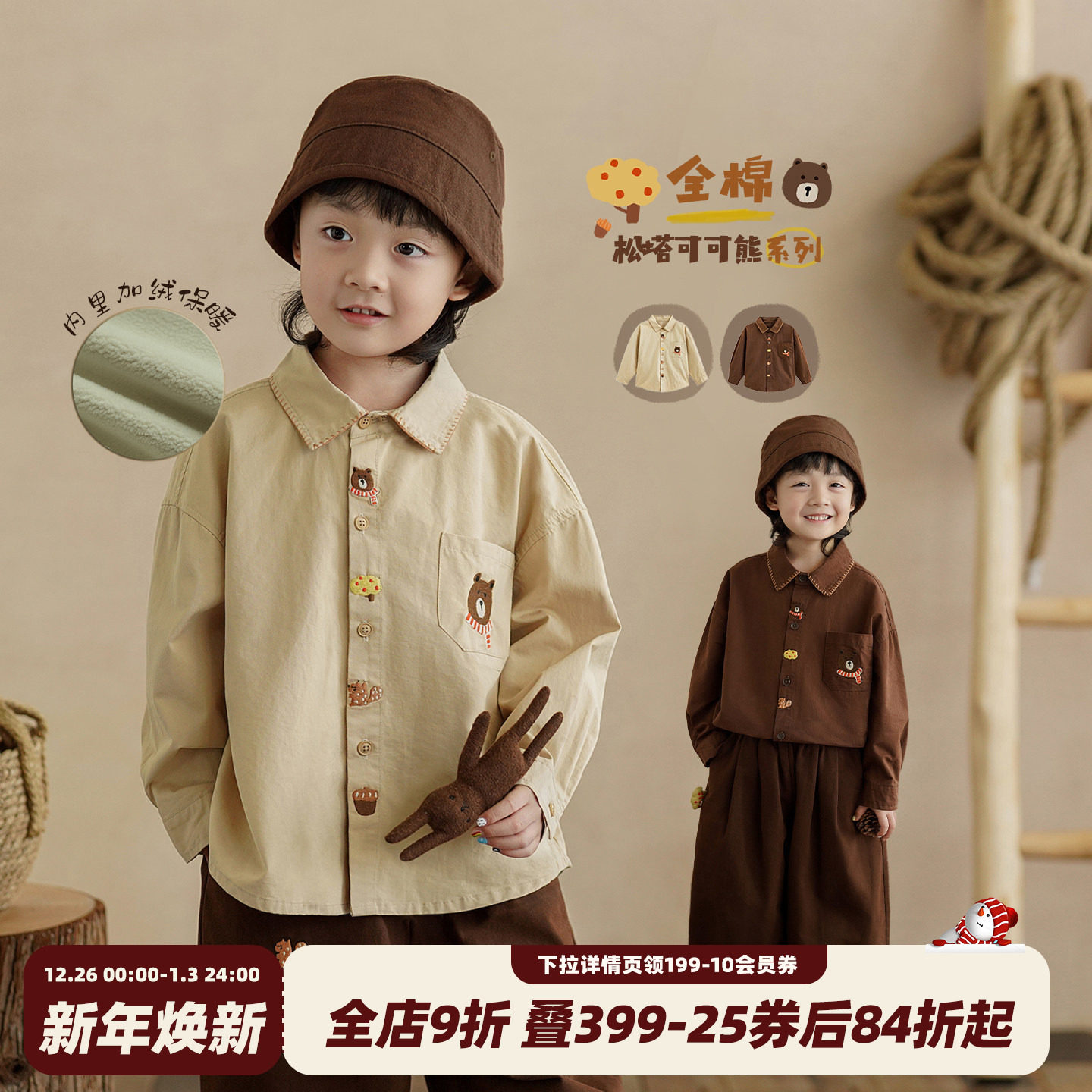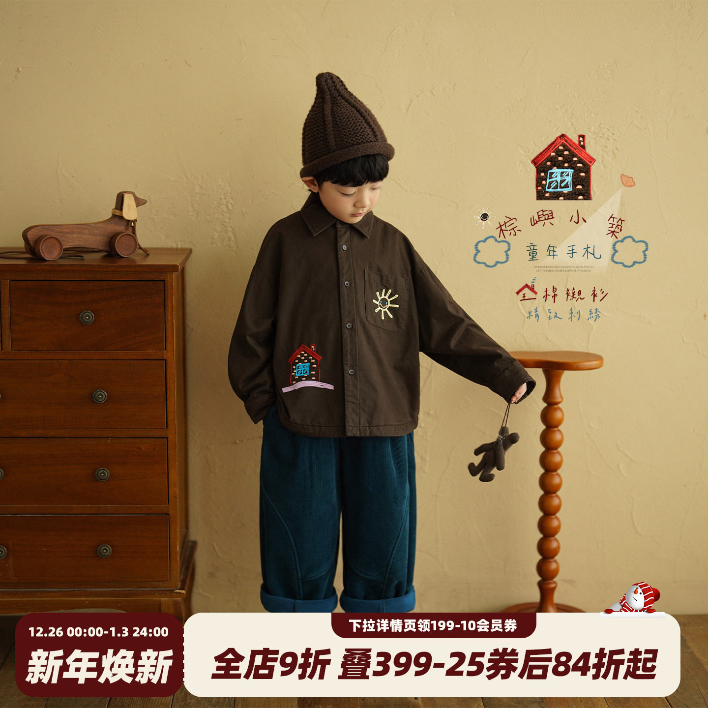 砚台家童装男童加绒衬衫冬款中小童森系刺绣上衣儿童纯棉衣服冬装