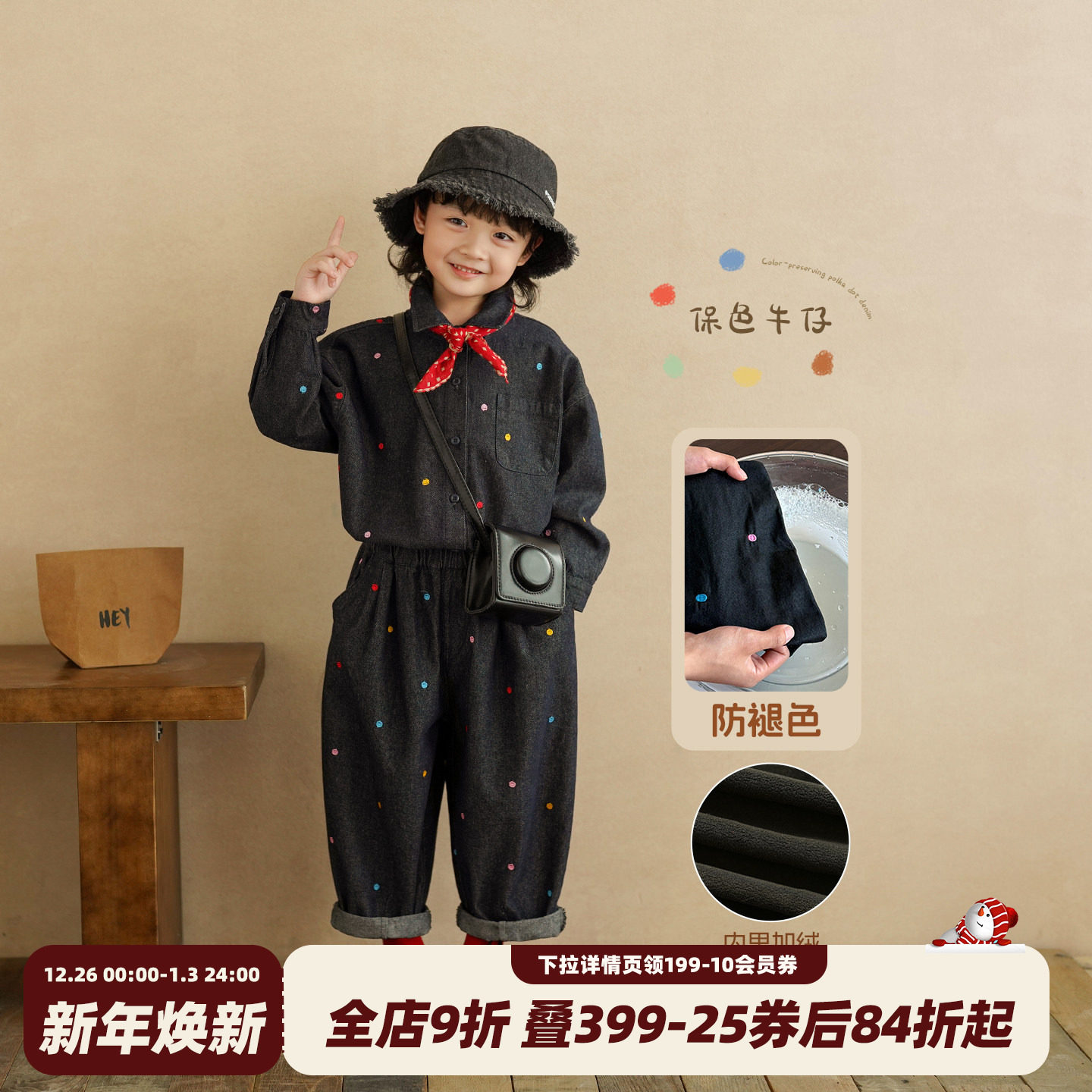 砚台家童装小男童加绒冬装套装宝宝衬衣外套男孩衣服儿童牛仔衬衫