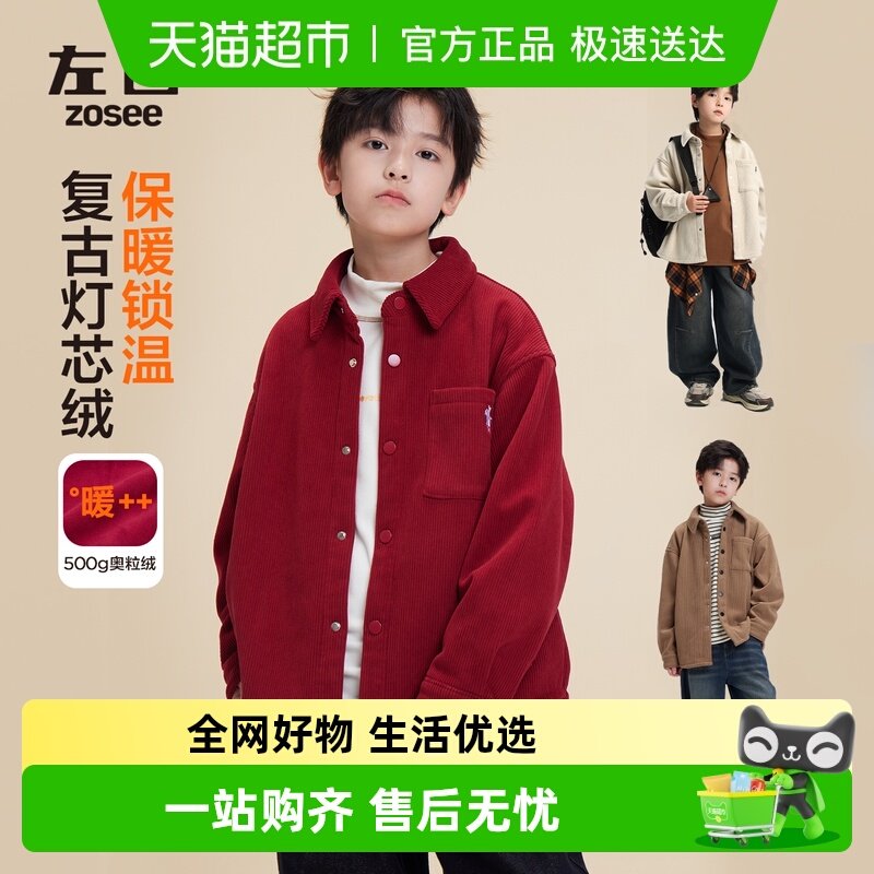 左西童装男童加绒衬衫加厚儿童灯芯绒外套2025新款奥粒绒秋冬保暖