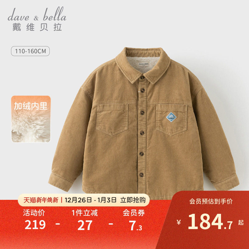戴维贝拉男童加绒衬衫儿童灯芯绒衬衣2025冬装新款中大童洋气上衣
