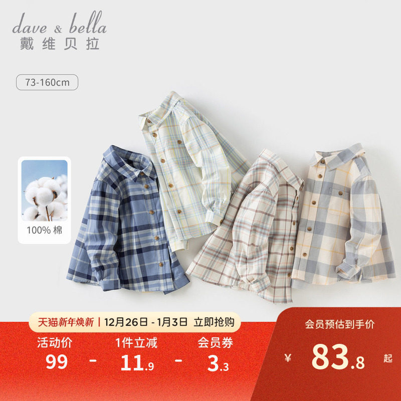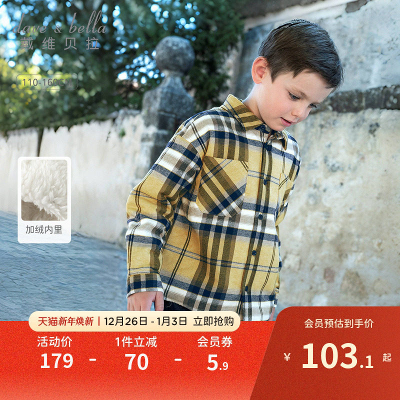 戴维贝拉男童加绒衬衫儿童格子衬衣2025冬装新款宝宝外套上衣童装