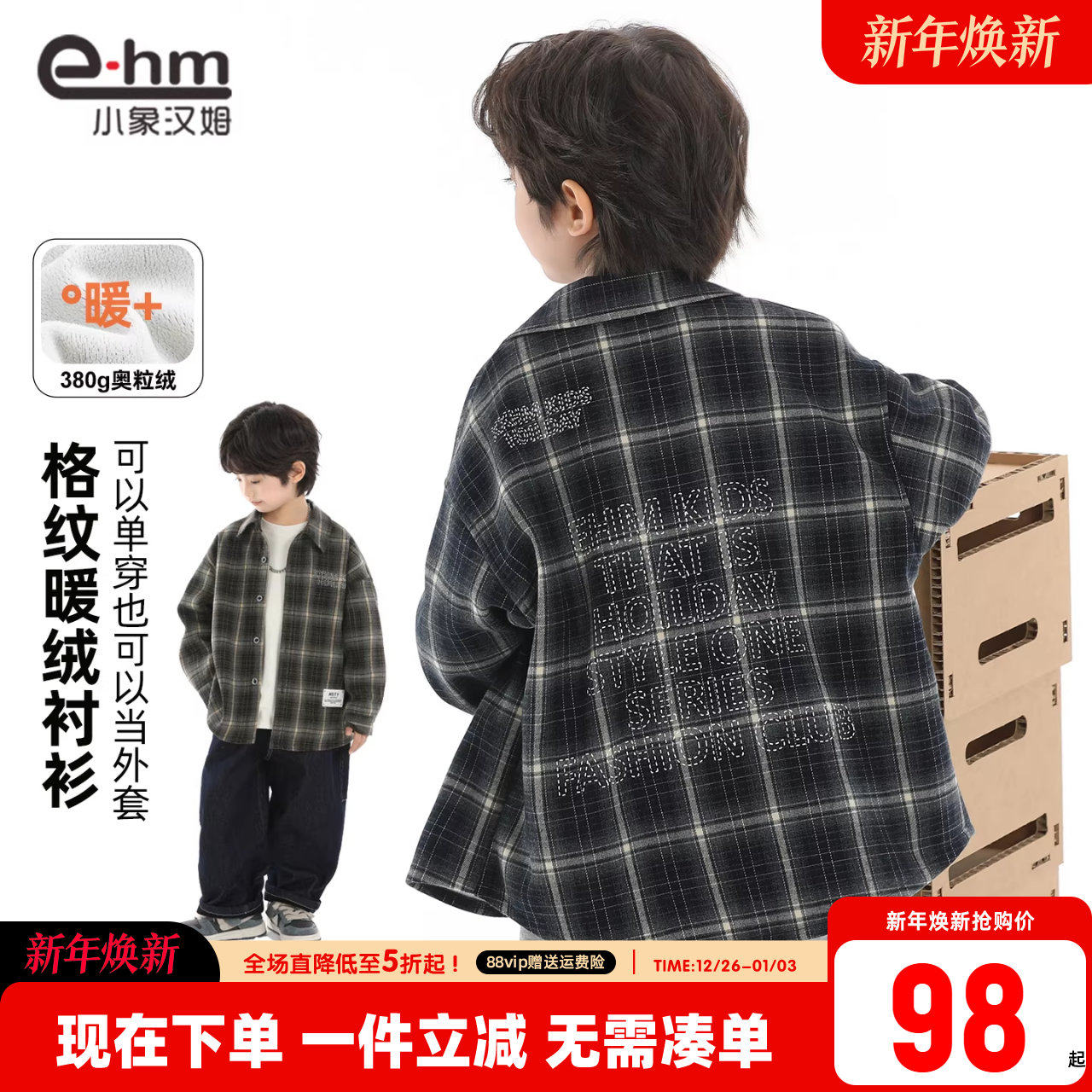 小象汉姆童装男童加绒衬衫儿童保暖打底衫2025冬装新款男孩外套潮
