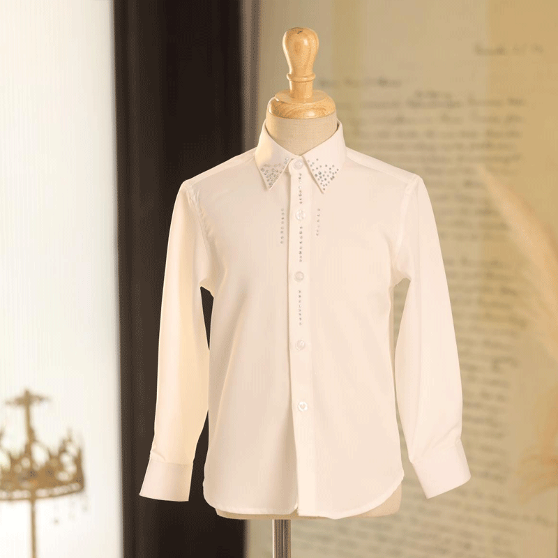 男童加绒衬衫儿童走秀西装白色长袖衬衣花童婚礼小学生衬衫服装男