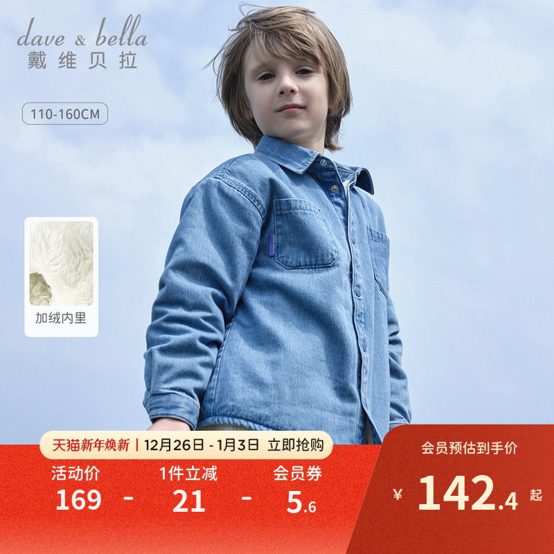 戴维贝拉男童加绒衬衫儿童牛仔衣外套2025冬季新款衬衣大童上衣男