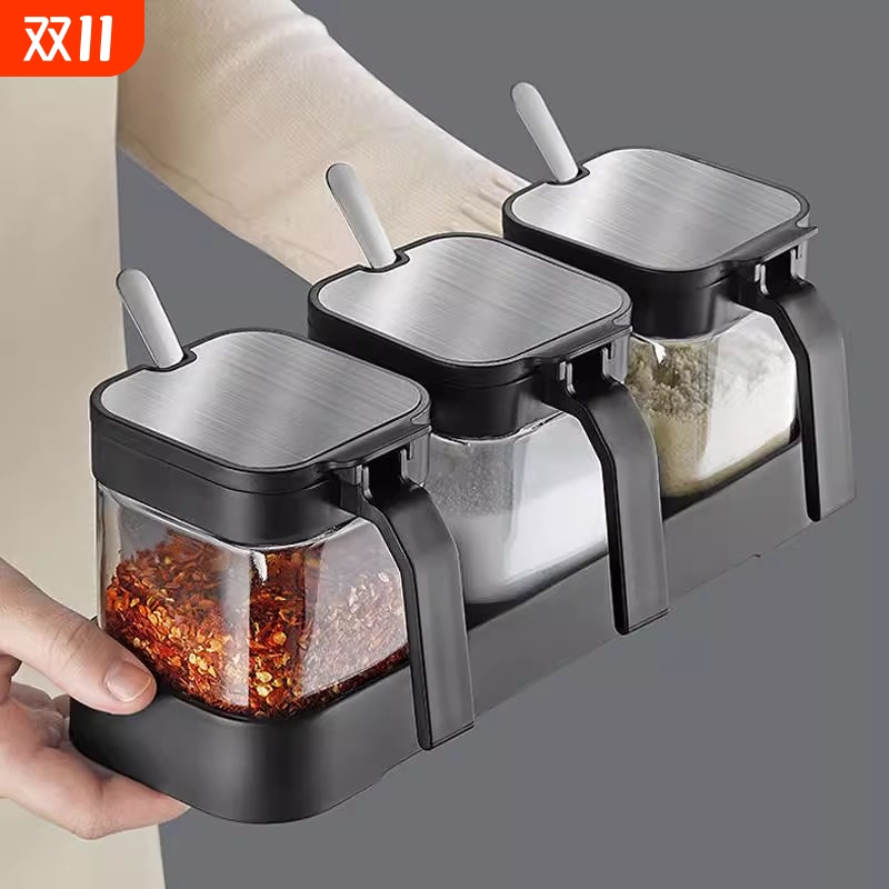 新款密封调料瓶调料厨房玻璃家用调味盐罐套装收纳盒防潮味精收纳