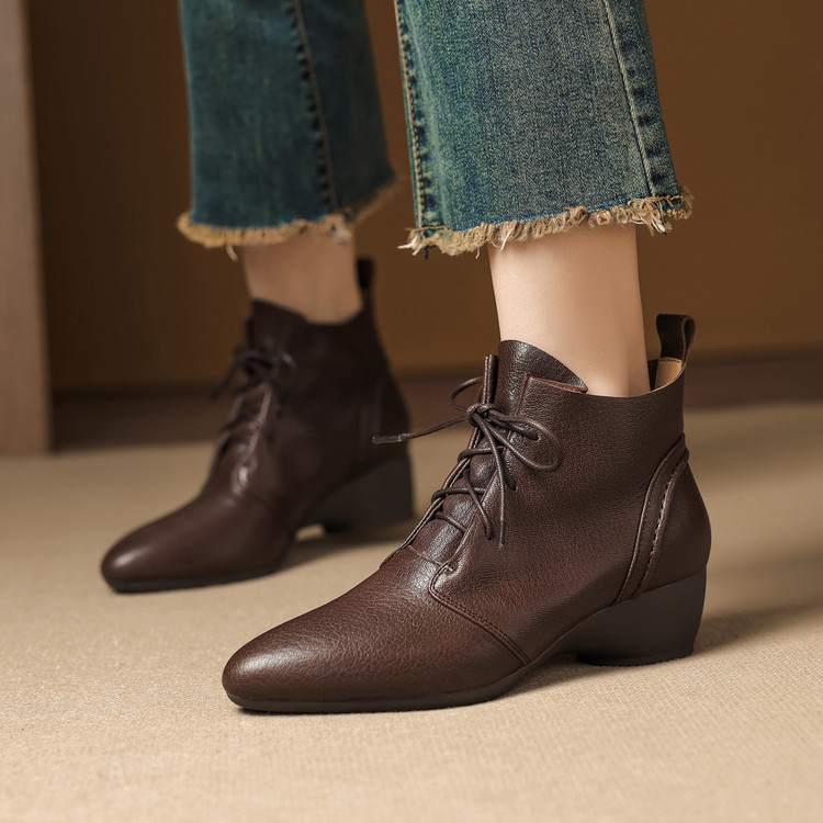 2025新款秋冬法式气质女鞋尖头磨砂小跟短靴及踝靴细跟低跟真皮鞋