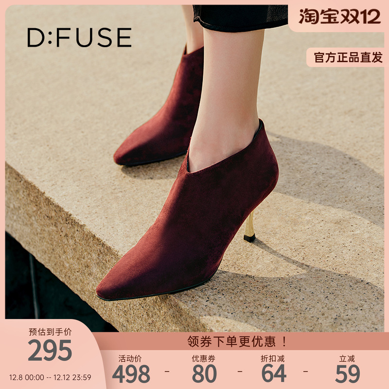 达芙妮尖头小短靴女加绒2025新款秋冬细跟高跟鞋气质及踝靴瘦瘦靴
