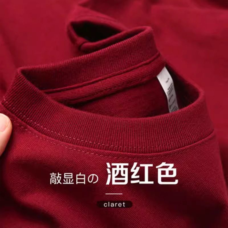酒红色400g重磅纯棉短袖T恤夏季小领口宽松厚实不透男女百搭款
