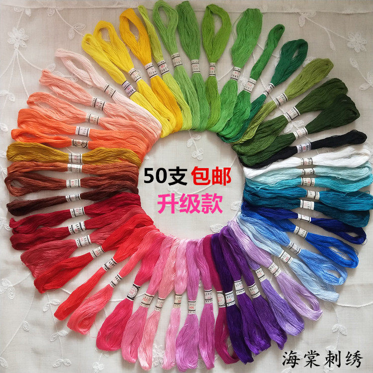 刺绣专用棉线绣花线丝线彩色50色做衣服缝配线纳鞋垫十字绣线手工