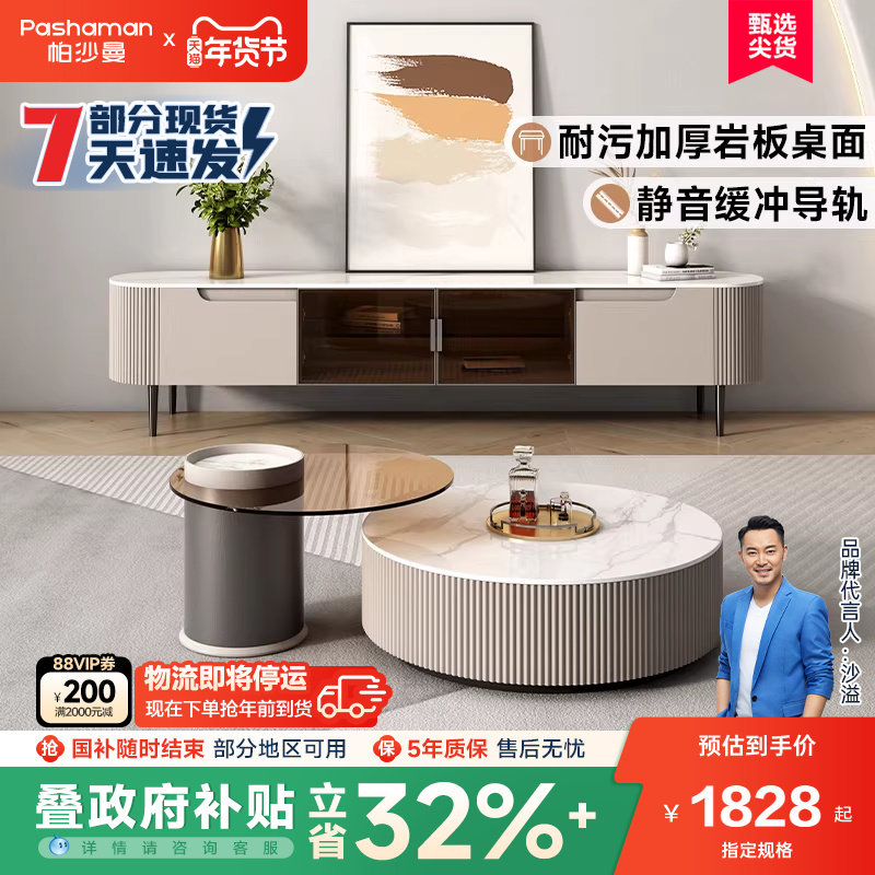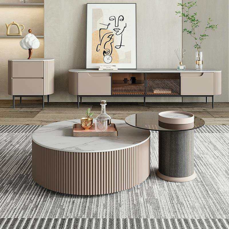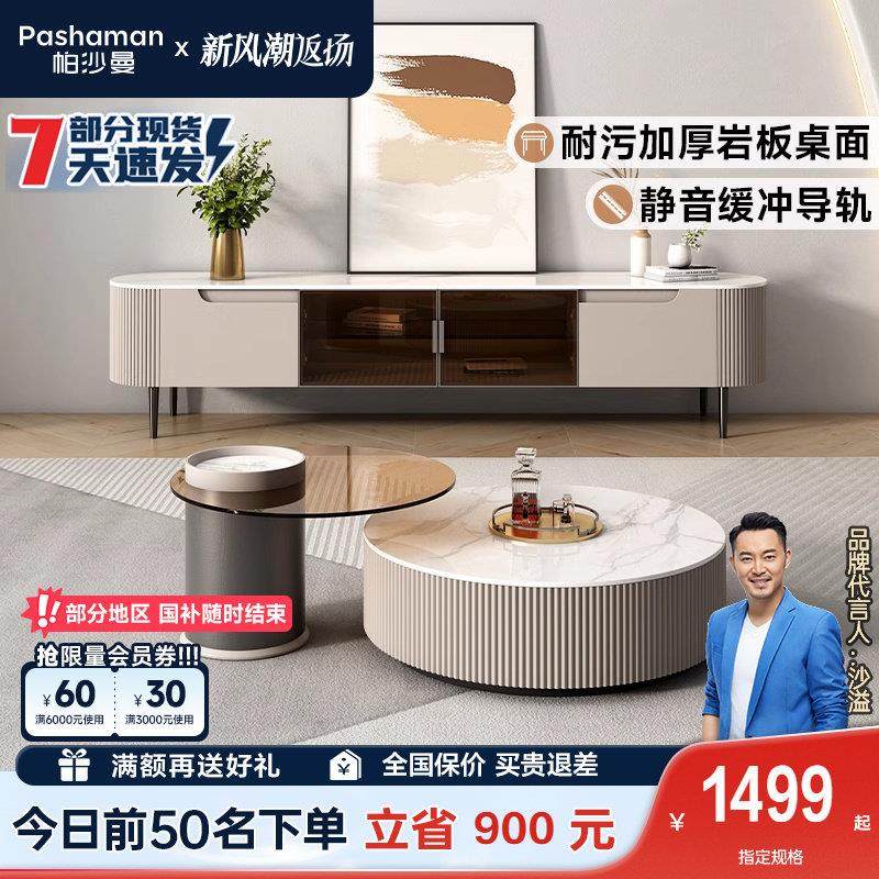 帕沙曼岩板茶几电视柜组合北欧现代简约客厅创意大小圆茶台储物柜