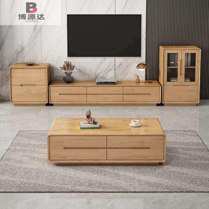 工厂直供实木茶几电视柜组合北欧现代简约小户型落地式客橡胶木储