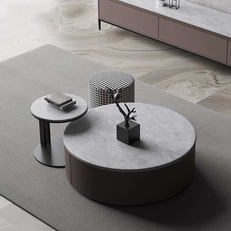 意式圆形岩板茶几电视柜组合北欧简约小户型客厅家用储物伸缩茶桌