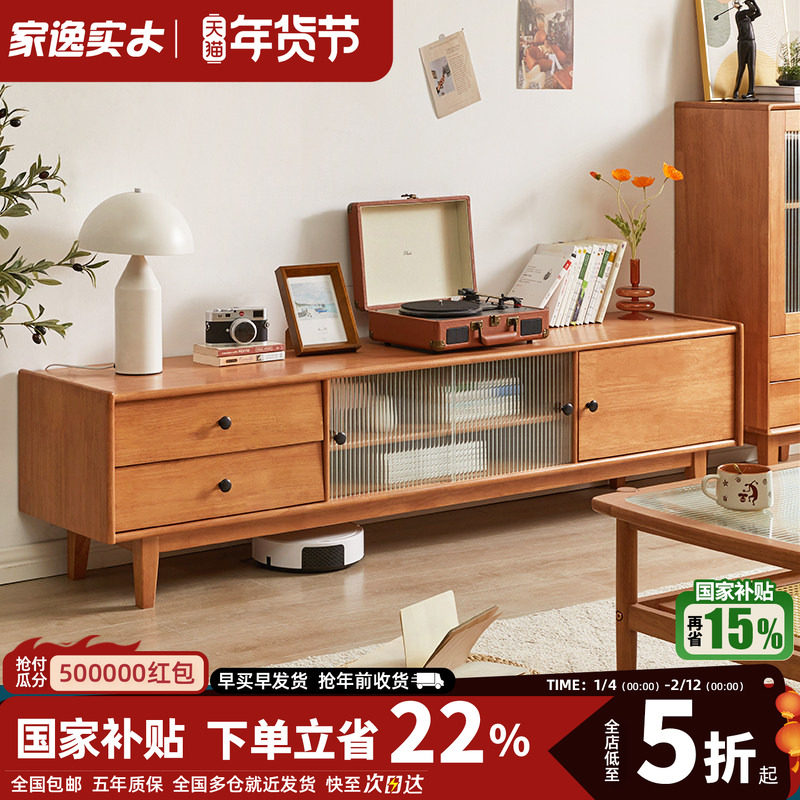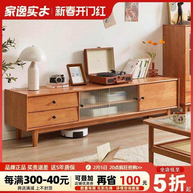 家逸实木茶几电视柜组合北欧原木家具简约现代樱桃木色小户型墙柜