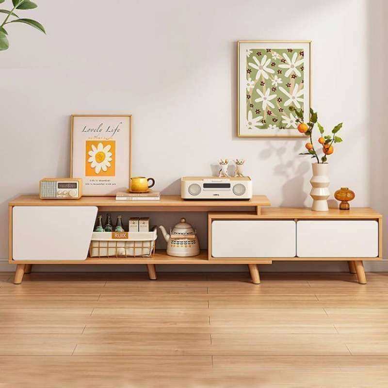 北欧电视柜茶几组合现代简约轻奢小户型地柜原木色可伸缩电视机柜