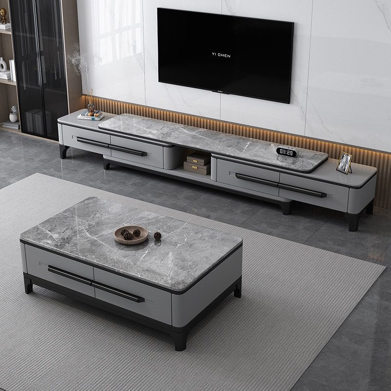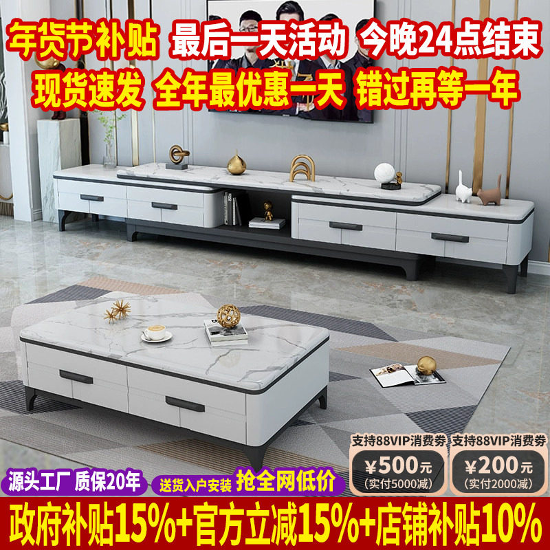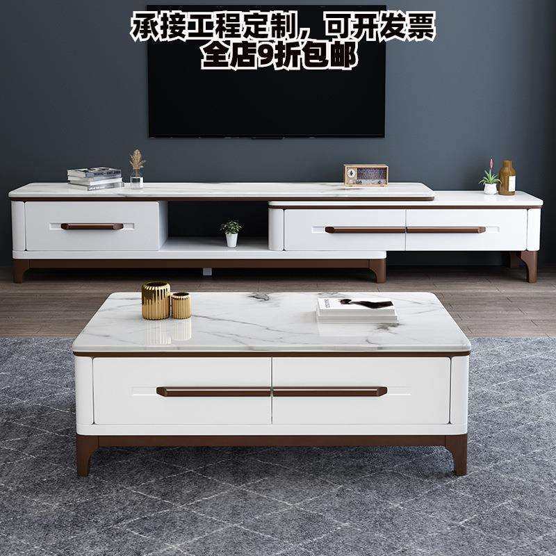 现代简约亮光岩板茶几电视柜组合北欧茶几桌客厅家用可伸缩电视柜